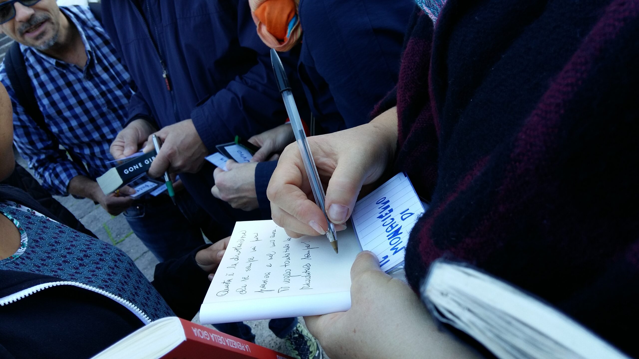 Abbiamo dato vita a passeggiate insolite/sensoriali in cui storia, arte, letteratura ed animazione si intrecciano, creando un’alchimia in grado di coinvolgere i partecipanti con tutti i sensi, anche in senso letterale. Il percorso è stato caratterizzato non solo attività di animazione, ma anche un reading collettivo, un coffee break ed uno scambio di libri. Siamo molto soddisfatti del risultato ottenuto, e speriamo di aver trasmesso un minimo del nostro entusiasmo ai partecipanti (provenienti dall’Italia intera) della “tre giorni” di trekking!